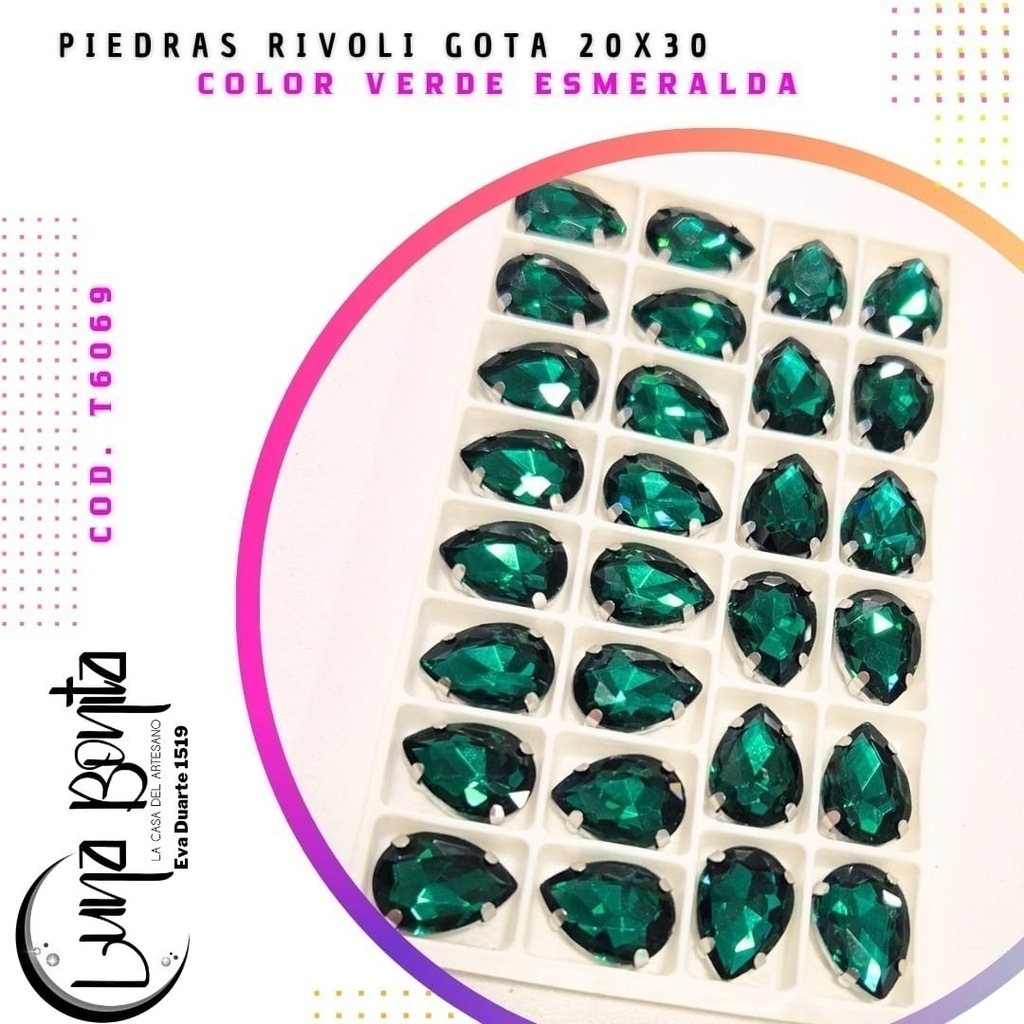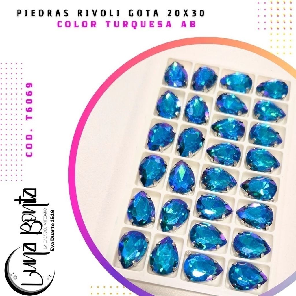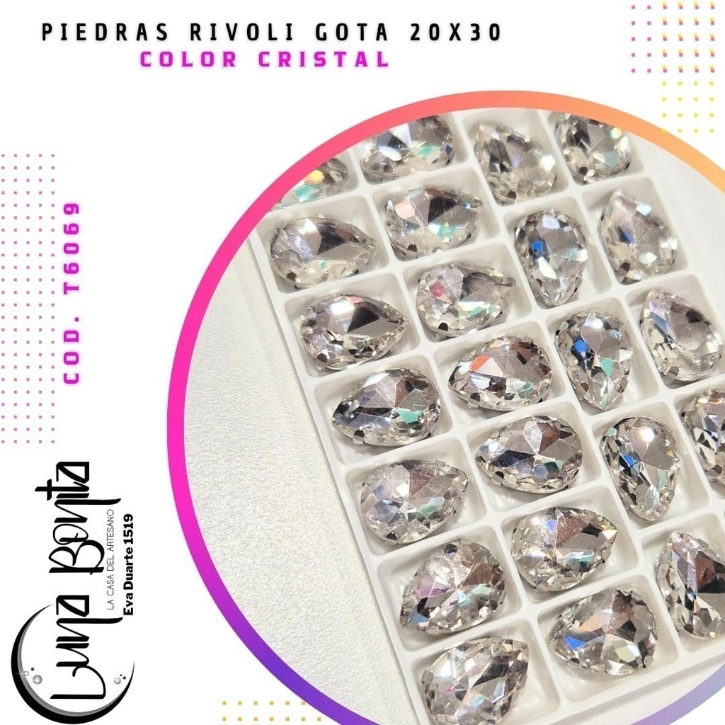 Descubrí la Piedra Rivoli Gota 20x30MM, el complemento perfecto para dar un toque de elegancia y sofisticación a tus proyectos. Presentadas en un práctico blíster de 12 unidades, estas piedras son ideales para diseñadores, artesanos y amantes del DIY que buscan calidad y estilo en cada detalle.
