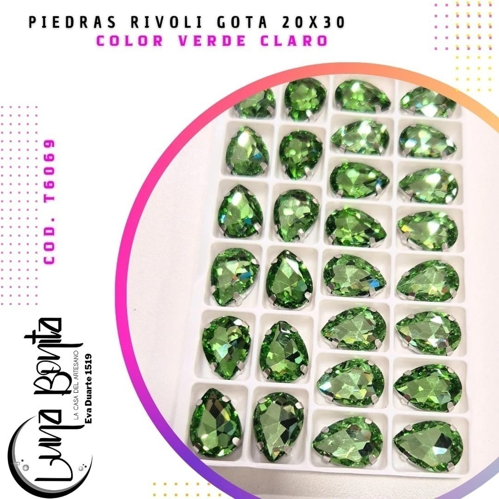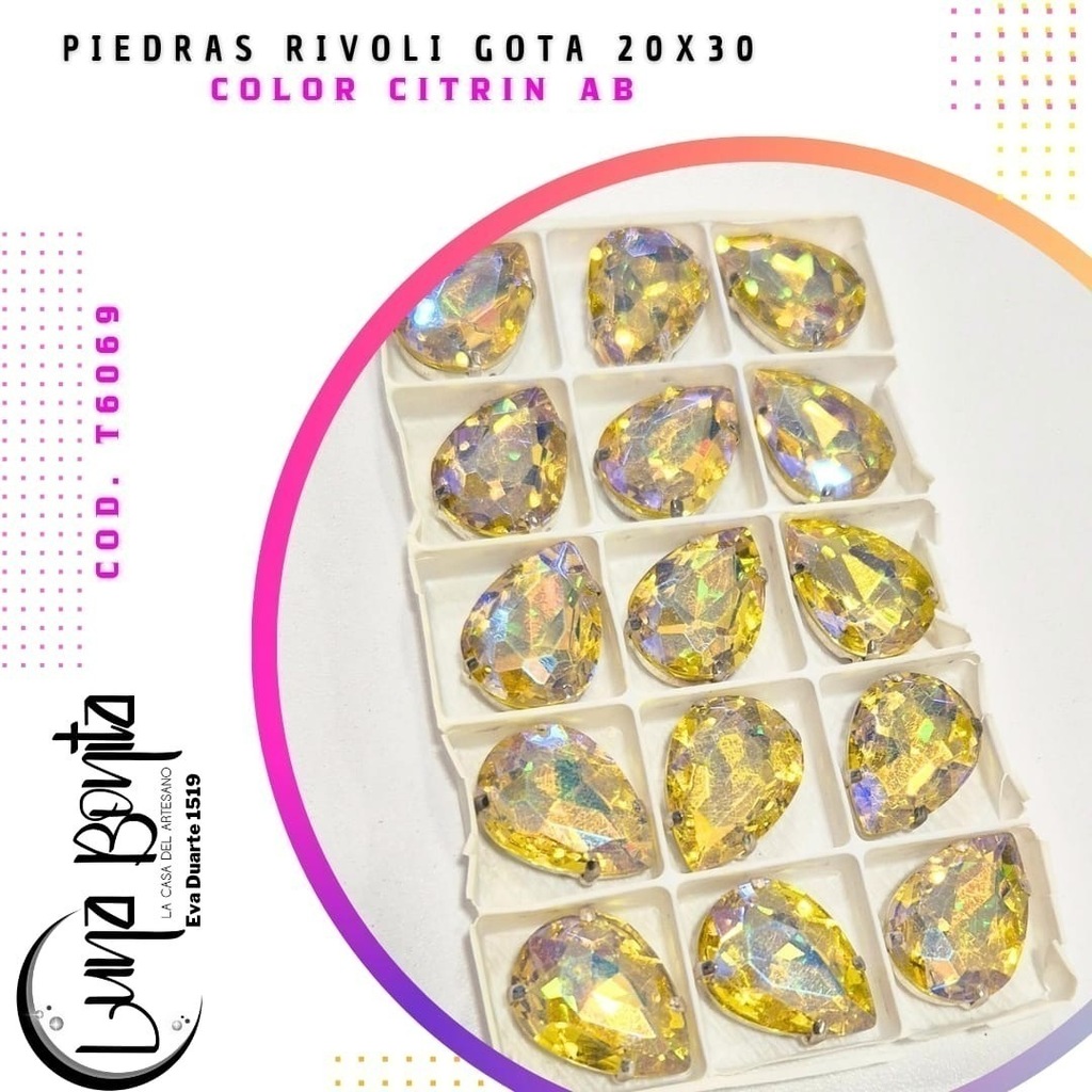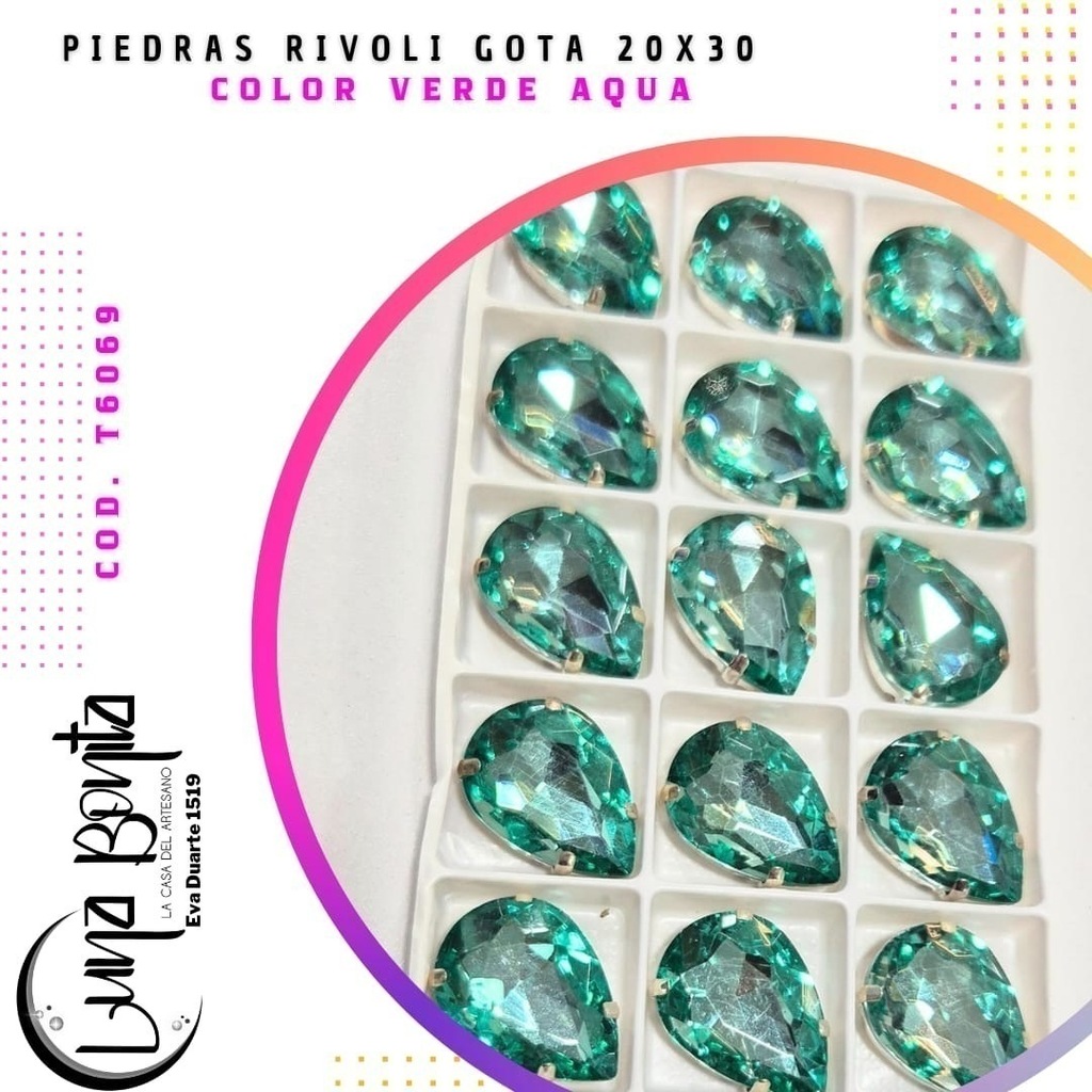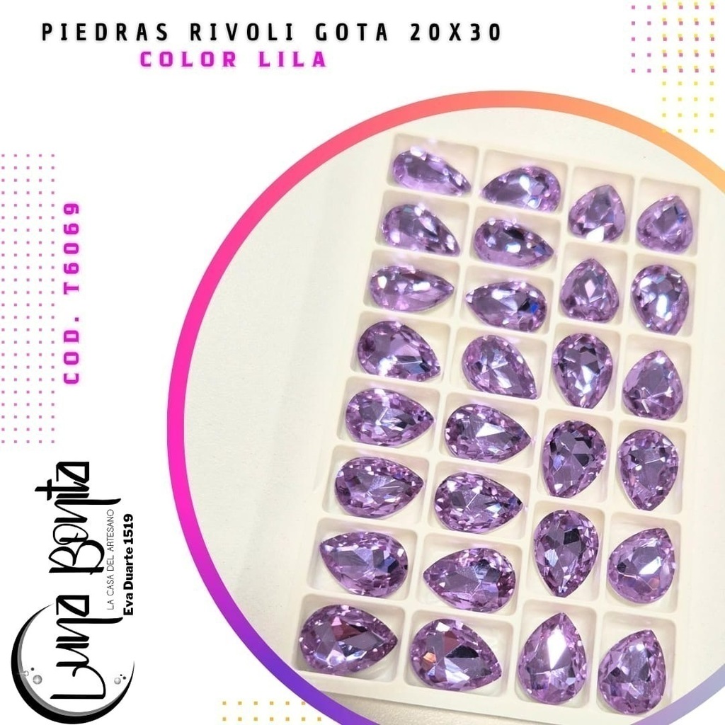 Descubrí la Piedra Rivoli Gota 20x30MM, el complemento perfecto para dar un toque de elegancia y sofisticación a tus proyectos. Presentadas en un práctico blíster de 12 unidades, estas piedras son ideales para diseñadores, artesanos y amantes del DIY que buscan calidad y estilo en cada detalle.